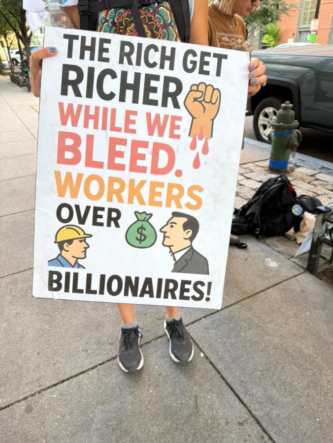 While walking through the Navy Yard, a section of Washington, D.C., I witnessed a peaceful protest taking place. While the protest was mainly directed towards the National Guard, protesters were also directing their anger towards President Donald Trump. People ranging from young kids to older adults attended to have their voices heard. People holding signs such as “Release the Epstein Files” and “The Rich Get Richer While We Bleed. Workers over Billionaires.” Two people named Wendy and Ginelle took part in the protest. They expressed their frustration to me about how the country is turning into an America that no one expected to live in before President Donald Trump took office for his second term.